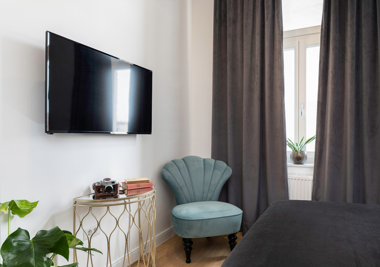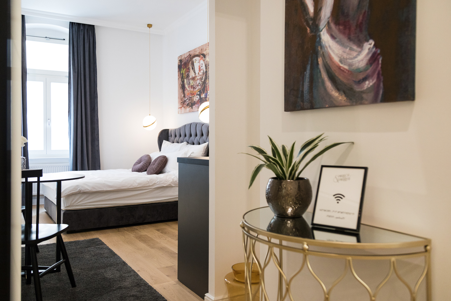 Luksuzno uređeni apartmani dostupni su s televizorom ravnog ekrana sa satelitskim programima,klima uređajem te internetom. U apartmanima se nalaze „king size“ kreveti veličine 180 cm x 200 cm.